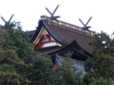山から見えた神社の屋根。立派で、思わずズームにして撮りました。