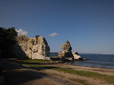 遠くに小さな島が幾つか霞んで見え、押し寄せる波が、白いラインを描く様に、浜辺に押し寄せて来る。